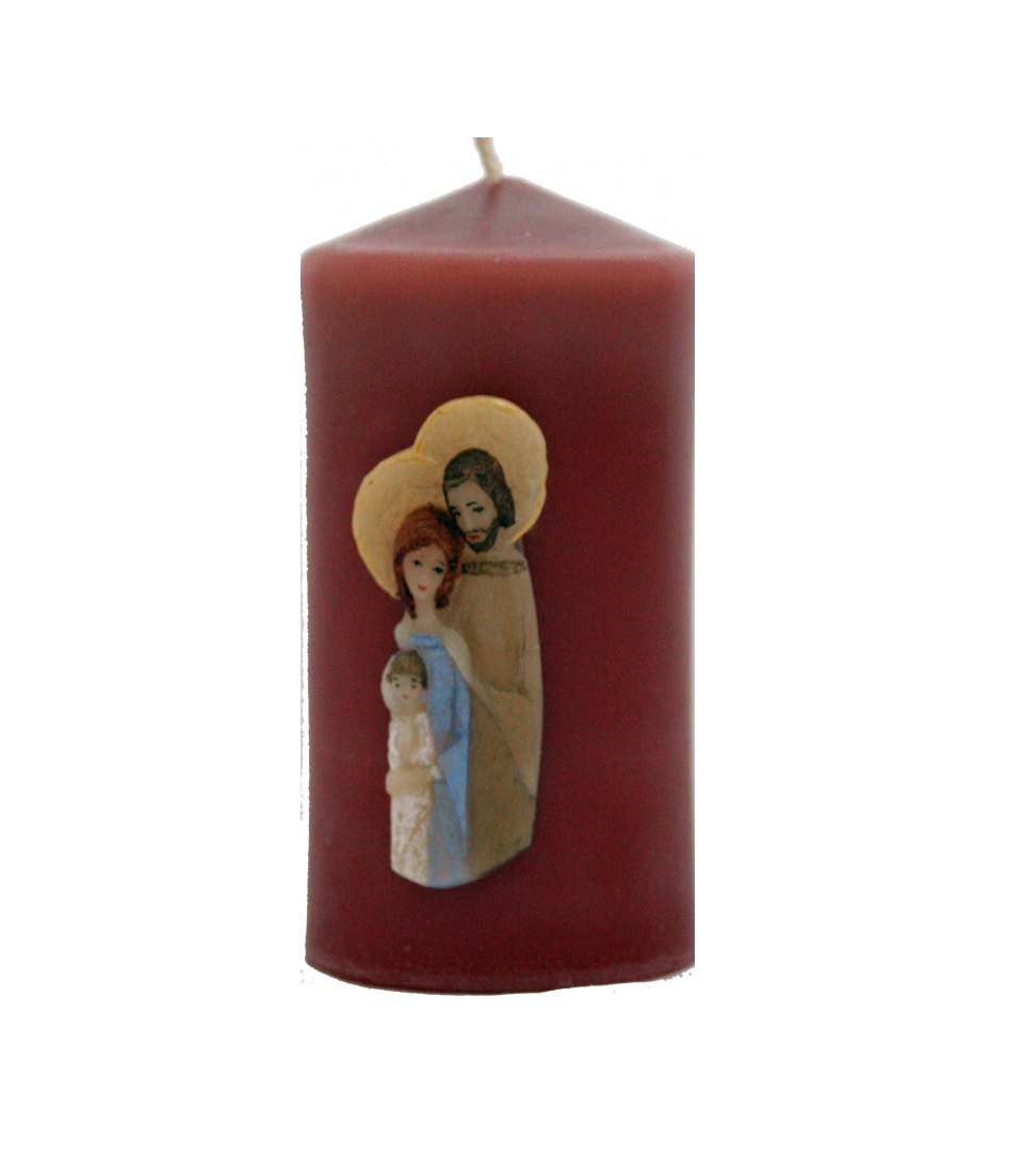 Ręcznie robiona świeca z aplikacją ze Świętą Rodziną.